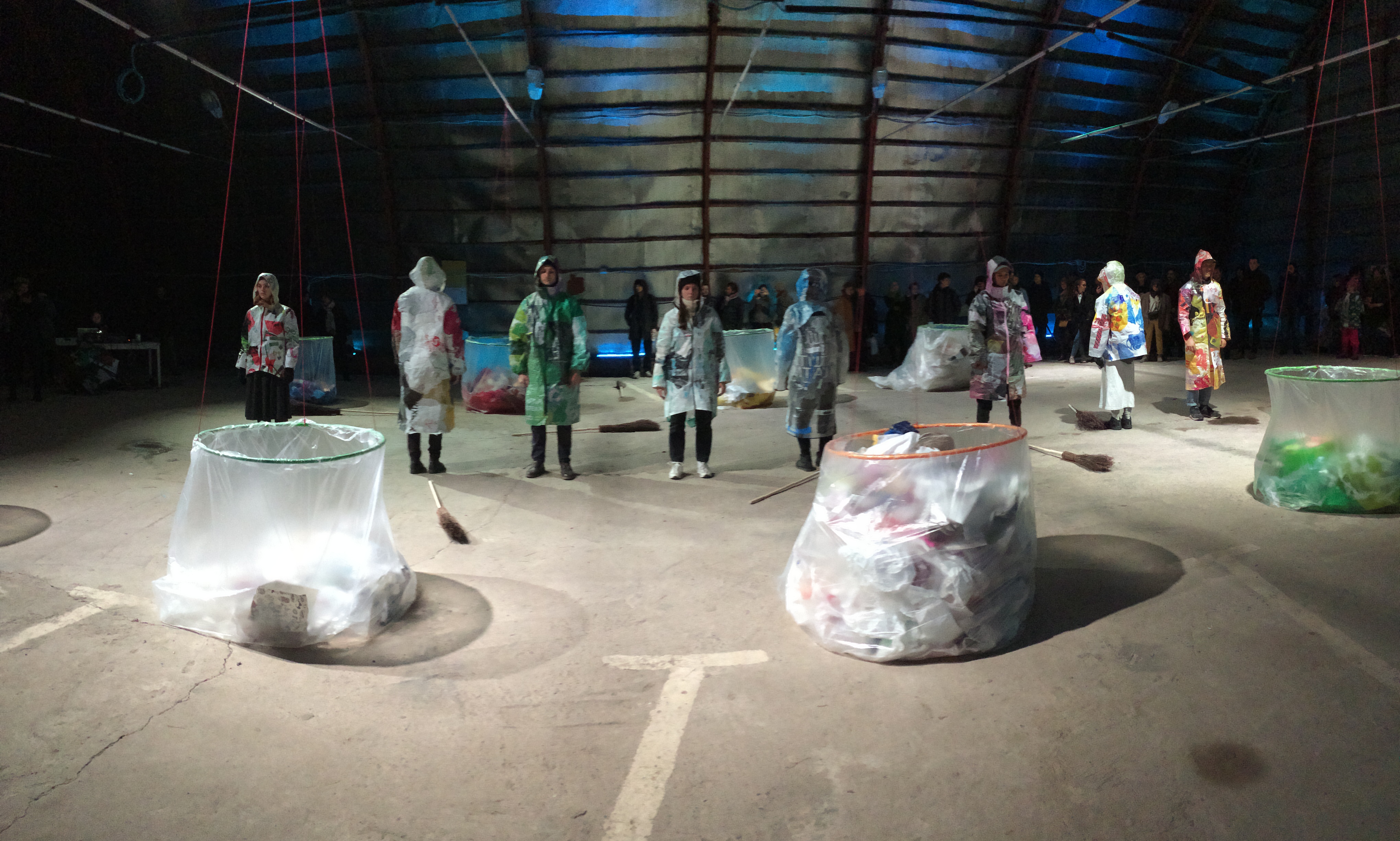 A performative presentation for the «Plasticdoom» brand capsule line of the raincoats made of pressed plastic bags designed by Galina Larina. Directed by Dasha Bresler in a collaboration with Galina Larina.